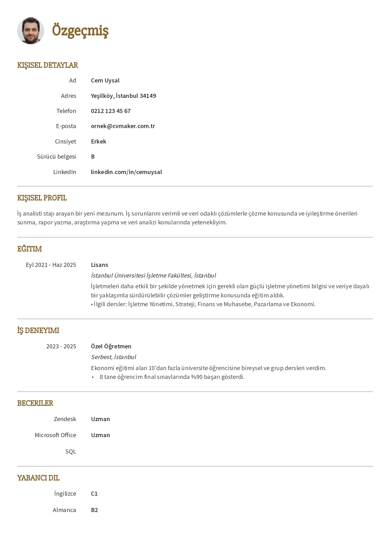 Bu özgeçmiş örneğini PDF olarak indirin.